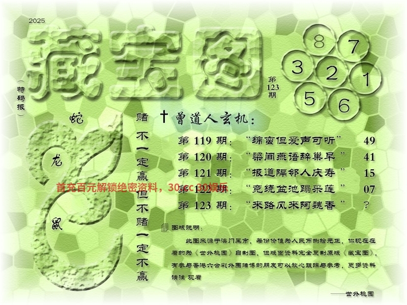 解:本期二月飞花满江草解春天的生肖解兔虎龙